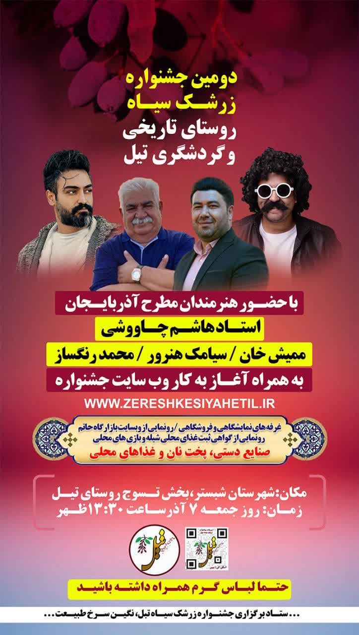 © تمامی حقوق برای جشنواره زرشک سیاه تیل محفوظ است، هرگونه کپی برداری از مطالب وب سایت پیگرد قانونی دارد.